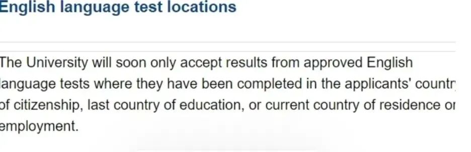 墨尔本大学将只接受学生在其国籍所在地、最近学历课程所在地或者常驻地/工作所在地参加的英语语言考试。